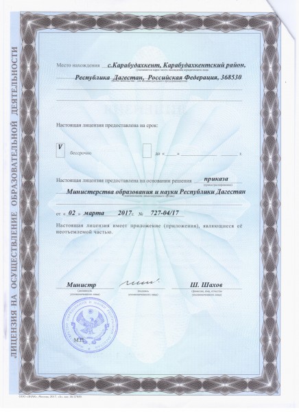 | Адрес местонахождения образовательной организации* | 368530, РД, Карабудахкентский район, с.Карабудахкент, ул.Гасана Абдуллаева12 |