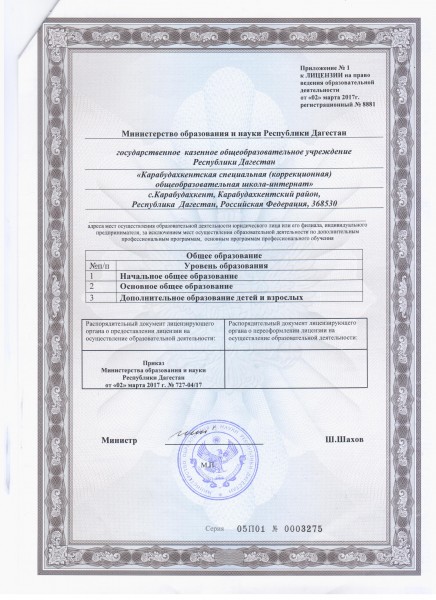 | Полное наименование образовательной организации* | Государственное казенное общеобразовательное учреждение Республики Дагестан "Карабудахкентская специальная (коррекционная) общеобразовательная школа-интернат" |
